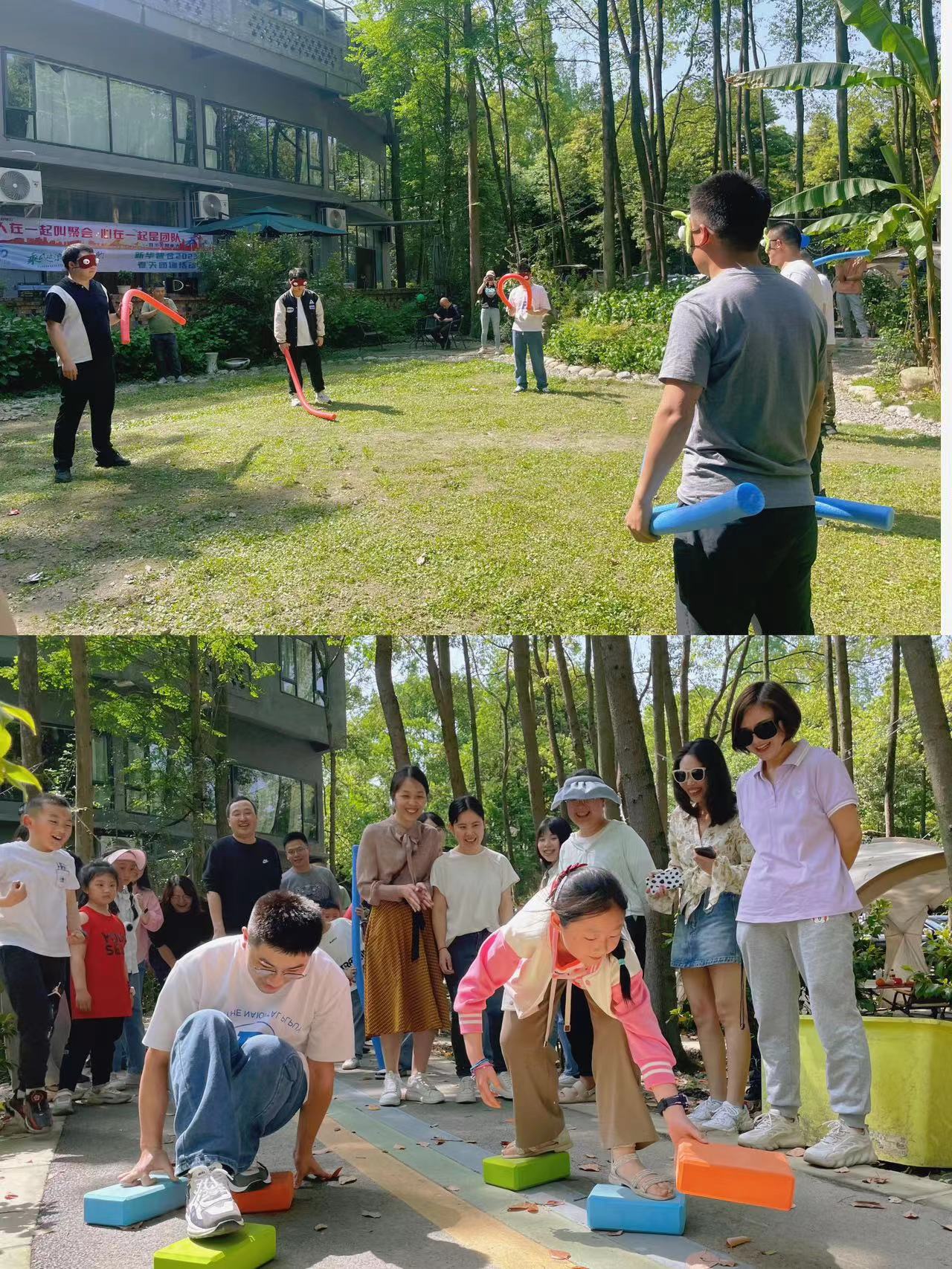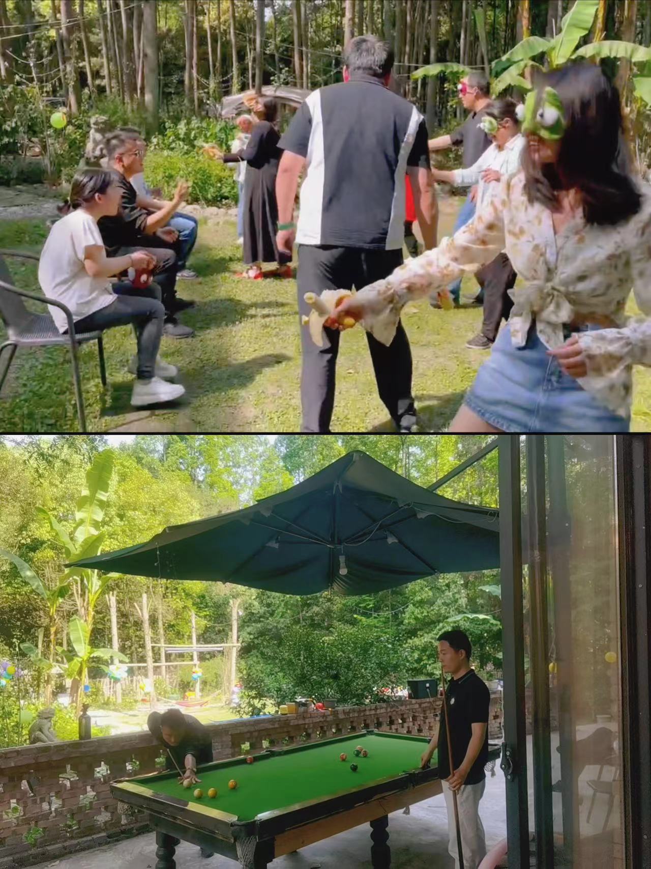 伙伴们自行组织前往都江堰市妙港林院民宿,进行了摸石头过河、蒙眼互打、蒙眼吃香蕉的游戏,趣味的团建游戏环节将活动推向一波又一波高潮,大家都积极参与,现场欢笑声、欢呼声不断。